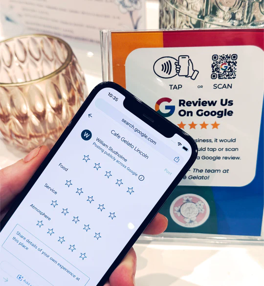 The next time they tell you how much they love your business, ask them to tap your Google review sign – they will instantly be directed to your Google review page where they can leave you a fantastic rating!